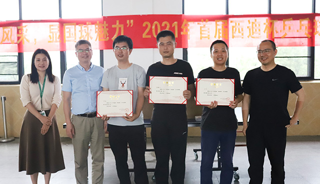 經過兩個下午的激烈角逐,技術中心代表隊(劉琪+李冬梅)、運營管理中心代表隊(巫吉+張瑜)、營銷中心代表隊(黃軻+沈艷純)分獲團體比賽前三名;趙鵬飛、王定、李闖分獲男子單打比賽前三名;李冬梅、張瑜、吳水英分獲女子單打比賽前三名。公司董事長兼首席財務官、首席風控官、行政人力中心總監等領導出席閉幕式并為獲獎個人頒獎。