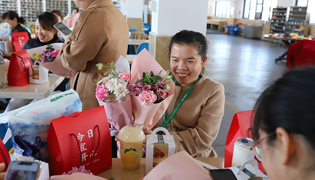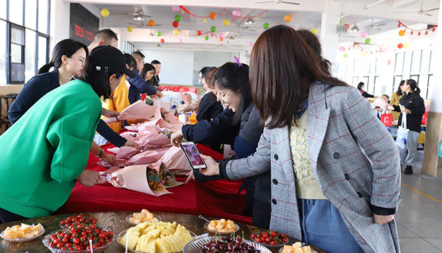 除了專屬禮品和鮮花外,公司還為每一位女神精心準備了奶茶、蛋糕、水果、小手工零食。滿滿的節日儀式感讓女同胞們臉上洋溢著幸福的微笑。