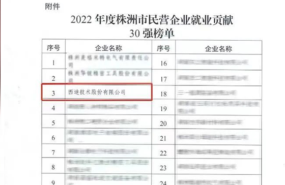 2023310日,株洲市人力資源和社會保障工作會議在市人力資源和社會保障局召開。會議為“2022年度主軸市民營企業就業貢獻30進行了授牌頒獎,本次表彰共授予株洲市30家企業就業貢獻獎稱號,西迪技術股份有限公司榮獲“2022年度株洲市民營企業就業貢獻獎”稱號。